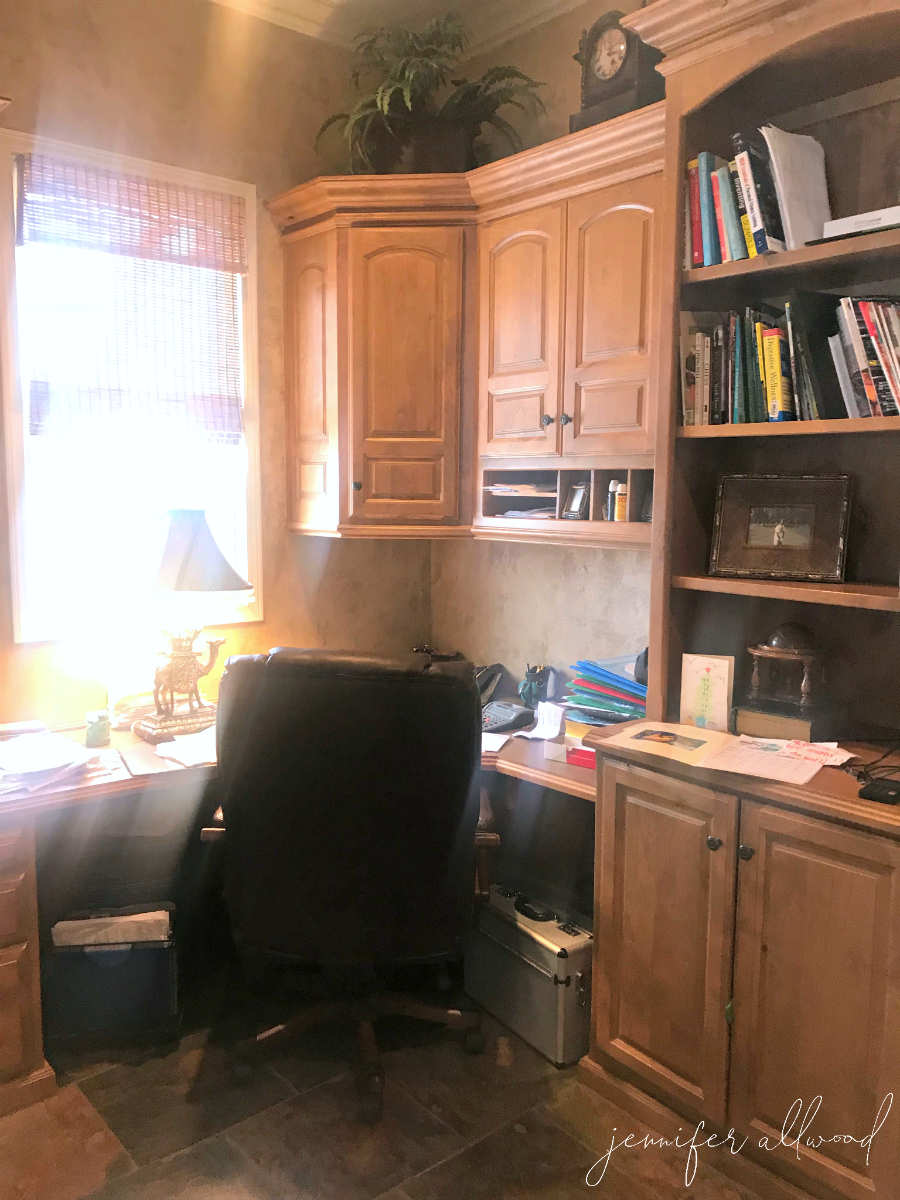 The new home that we purchased had a home office, which we recently revealed here, and it also had what could be considered a second home office right off of the kitchen and open to the kitchen. Instead of keeping that a second office we decided to turn that into a craft room for #OhAva. (my daughter)