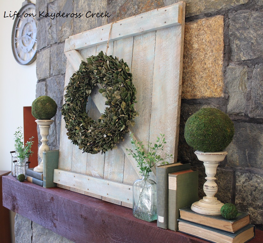 Colleen from My Life on Kaydeross Creek built a mini barndoor to use as spring decor on her fireplace mantle.