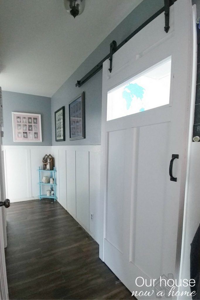 Emily at Our House Now a Home solved a problem of an annoying swinging door into her small laundry room by building a sliding barndoor.