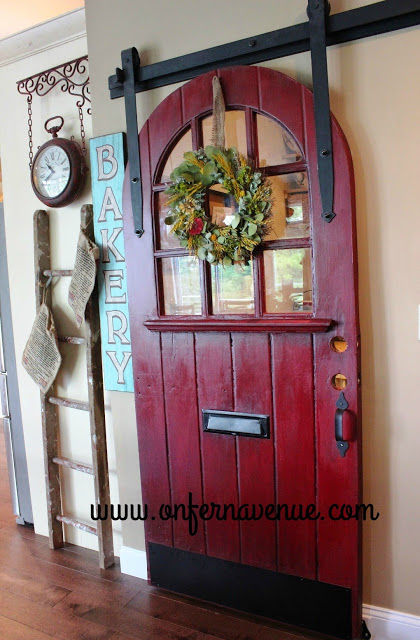 Lynn from LynnFern.com turned this salvaged round door to a bold red sliding door to her pantry. So fun!