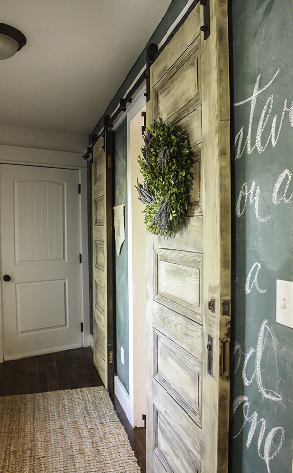 Sara from Twelve on Main wanted a custom barndoor with a unique bleached wood finish. She also has a great tutorial on how to build barndoors here too. And can we talk about her beautiful chalkboard wall????