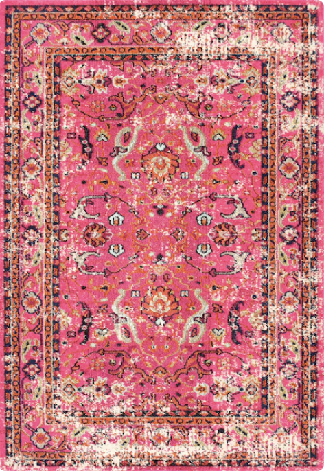 Recently, we decided to get a more colorful rug for our living room. I wanted something with some pops of fuchsia and navy so it would match our kitchen cabinets. So, I went looking on the internet for ideas. And maybe some of you are like me… and whenever you find something, you narrow it down to your top favorites. There were SEVERAL rugs that would have worked really well in the space, but at the end of the day, I had to make a decision. And let me tell ya, friend. I absolutely LOVE what we decided on.