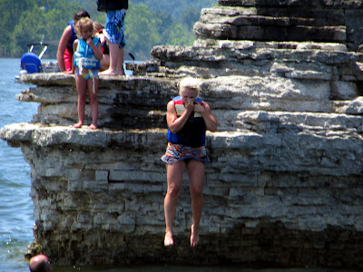 Here she is with her daddy!!!!! No nose plugging and NO FEAR as she jumps off of a bluff!!!!