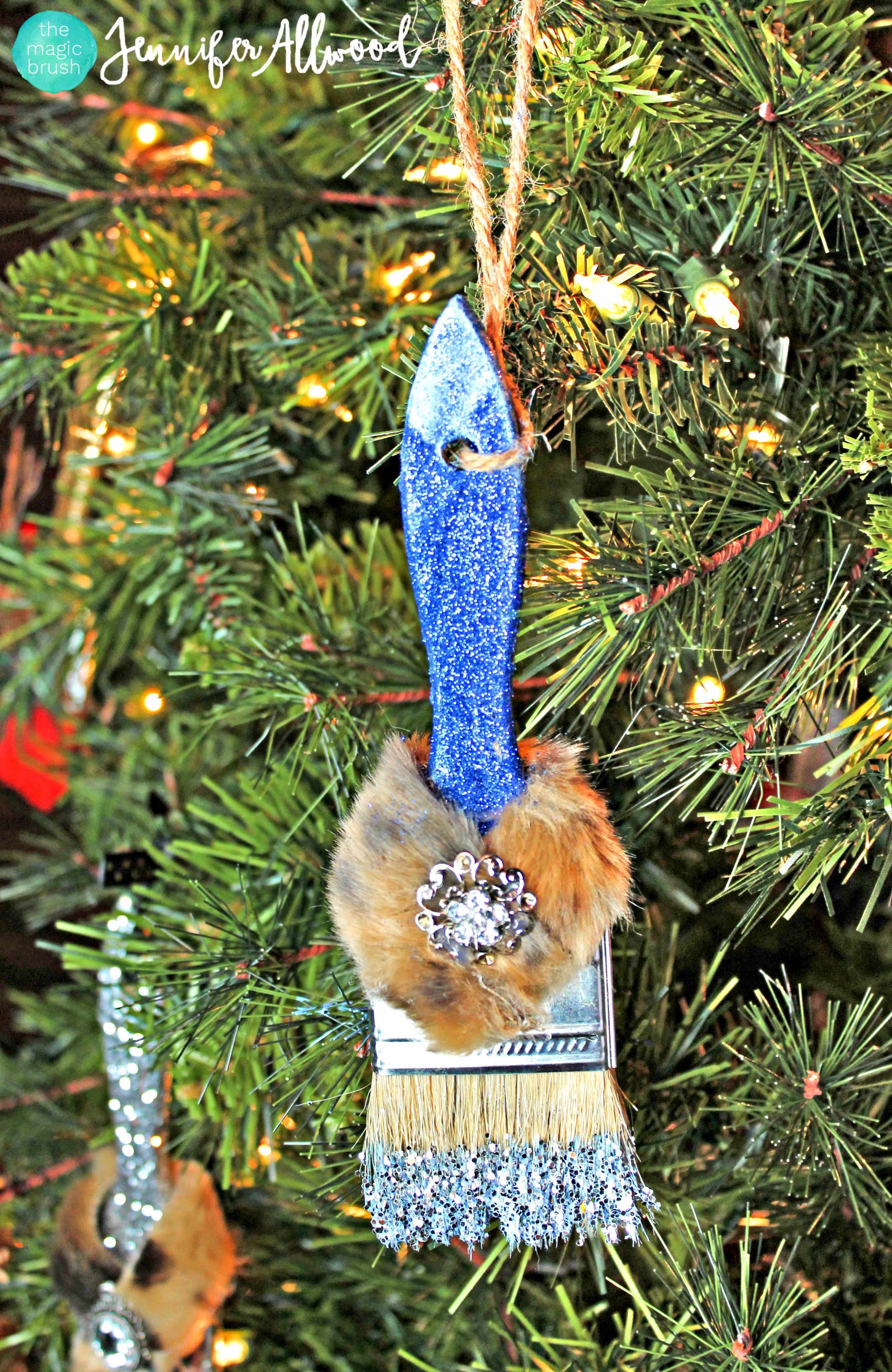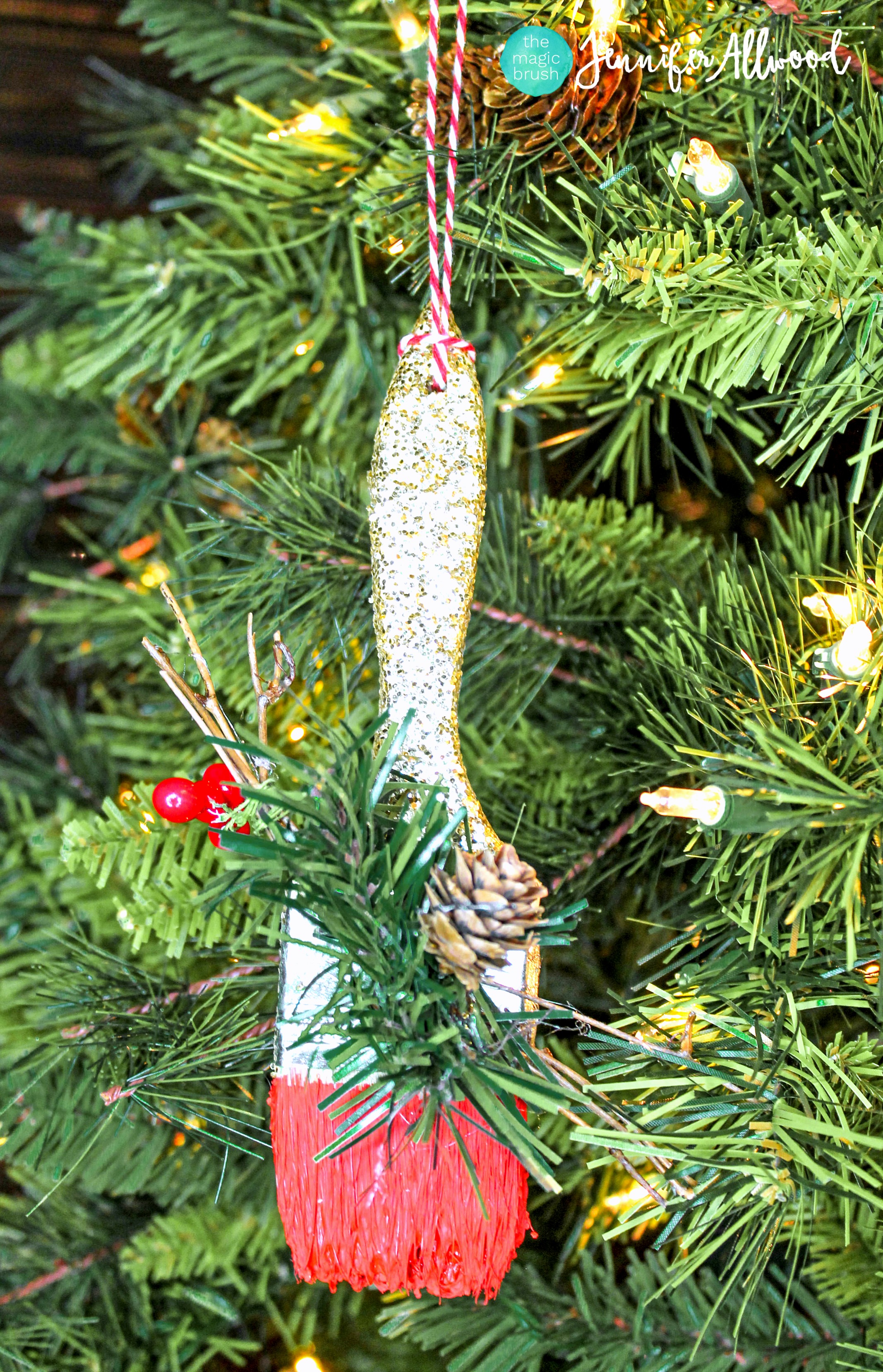 So it’s only fitting that I have made glittered ornaments from paint brushes to use as gifts and put on our tree!
