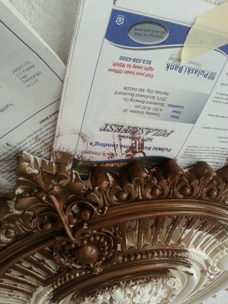 We often get asked to faux finish ceiling medallions for our clients. They are so fun to paint…..when they aren’t already on the ceiling. LOL!