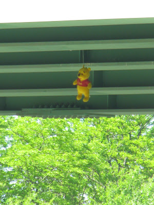 I have never noticed the pooh bear on the overpass! Crazy!