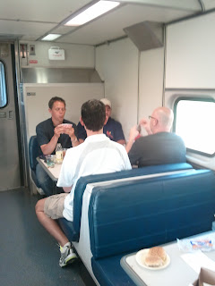 They hung out in the dining car where you could play games, eat, color, etc. They pretty much entertained themselves the ENTIRE time so the dads were able to do a little of this: