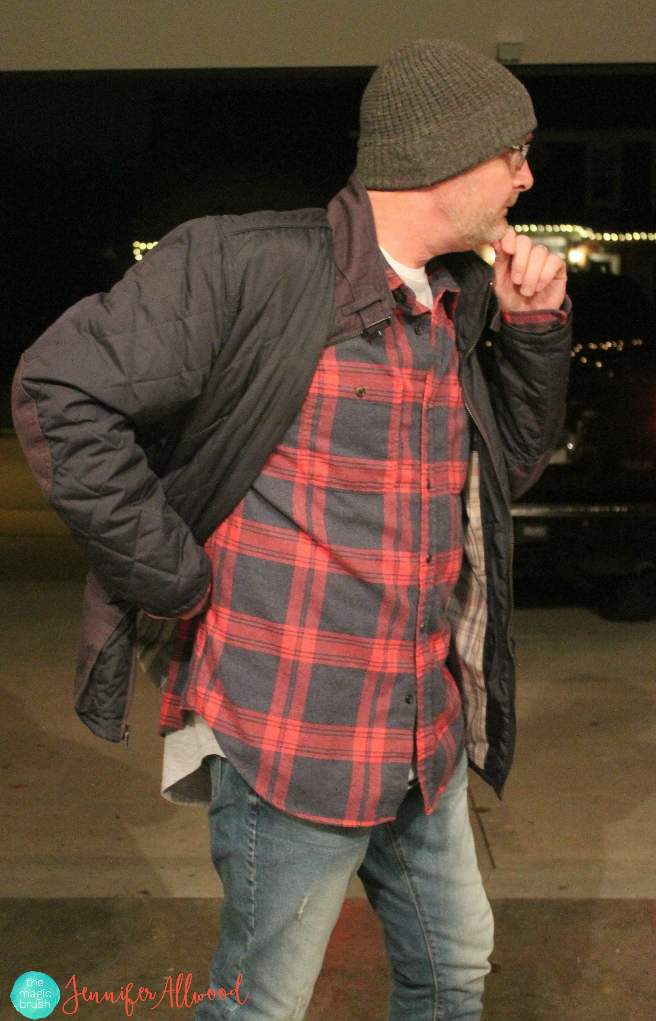 I tried to make him model the plaid shirt. And this is what I got. He calls it his “JC Penny catalog pose”. Lol.
